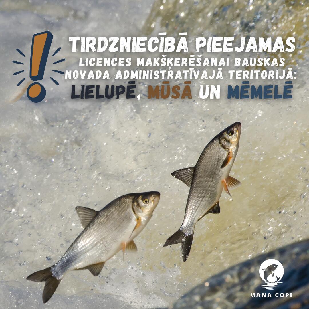 Informējam, ka platformā "Mana Cope" ir uzsākta licenču tirdzniecība makšķerēšanai Bauskas novada administratīvās teritorijas ūdeņos – Lielupē, Mūsā un Mēmelē. Saskaņā ar spēkā esošo regulējumu, laika posmā no 15. marta līdz 15. maijam šajos posmos tiek ieviesta licencētā makšķerēšana, paredzot specifiskus nosacījumus resursu saudzēšanai.