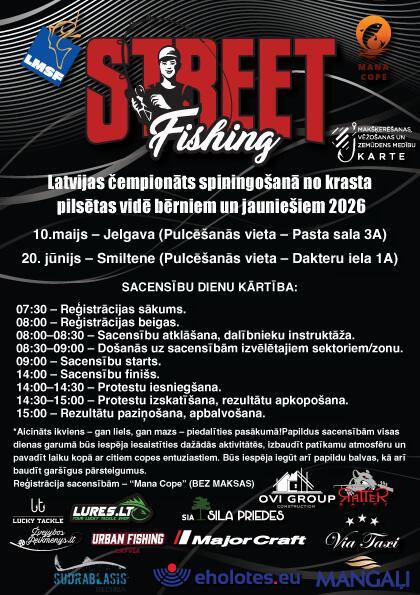 Makšķerēšana pilsētas vidē jeb Street Fishing kļūst arvien populārāka, pierādot, ka aizraujoša cope un lieliski lomi ir atrodami tepat netālu. Arī šogad bērni un jaunieši tiek aicināti piedalīties vērienīgajā Latvijas čempionātā spiningošanā no krasta pilsētvidē, kas norisināsies divos posmos – 10. maijā Jelgavā, Pasta salā, un 20. jūnijā Smiltenē, pie Tepera ezera. Šis čempionāts nav tikai atsevišķas sacensības, bet gan pārdomāts pasākumu cikls, kurā jaunieši varēs pierādīt savu meistarību un stabilitāti trijās vecuma grupās, U10 (2016. gadā dzimušie), U14 (2012.–2015. gadā dzimušie), U18 (2008.–2011. gadā dzimušie).